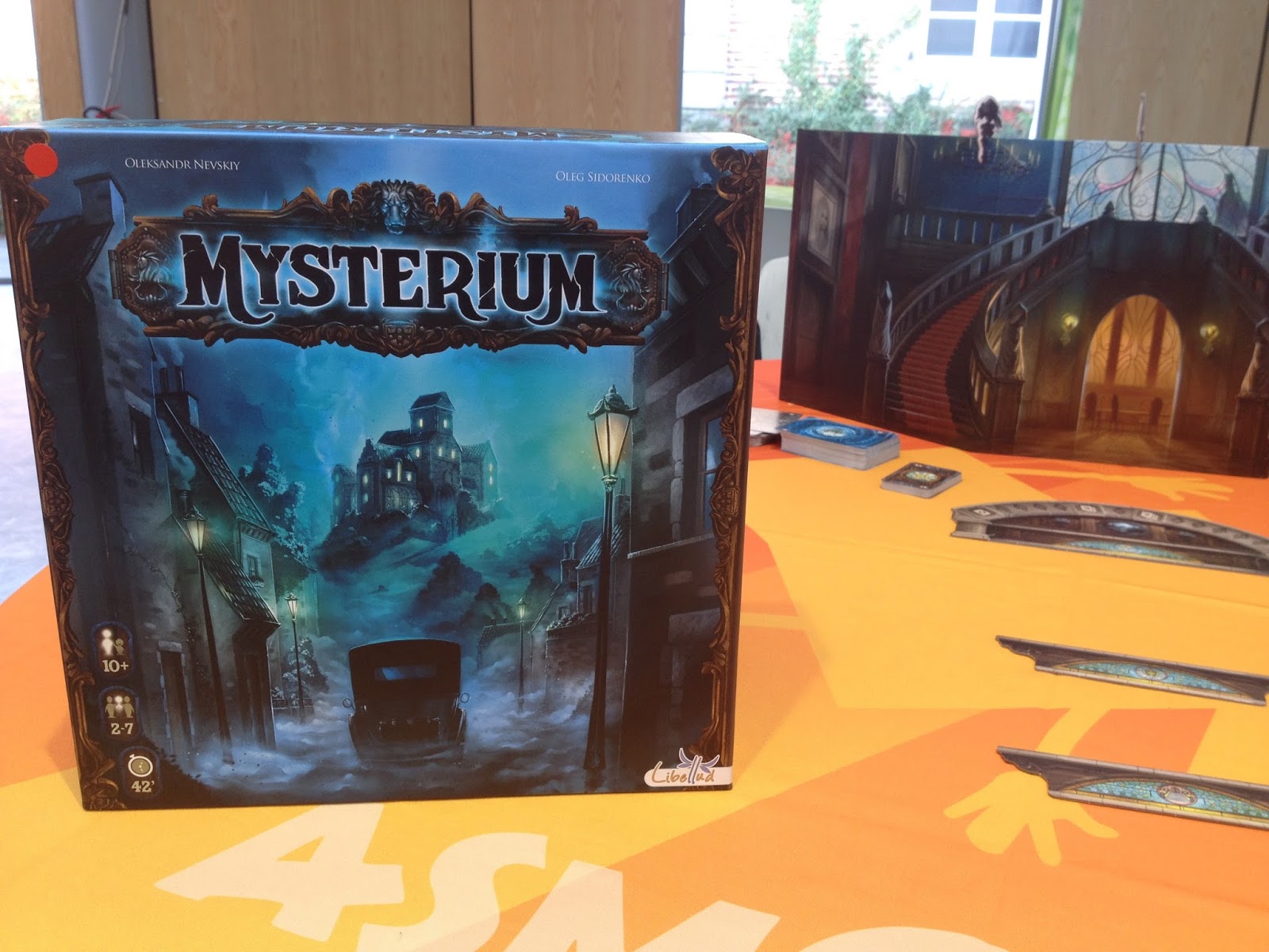 Après un petit repérage, on s’arrête à Mystérium. Ca tombe bien, c’est François d’Asmodee qui se charge d’expliquer. Une famille nous rejoint pour commencer une partie, nous voilà donc à 6 pour notre premier Mystérium…