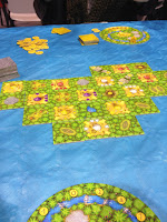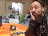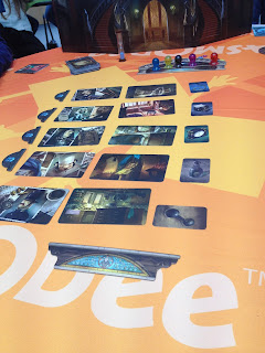 Le temps que d’autres tables se vident, Cowmic testera une partie avec Bernard. J’avoue que le graphisme et le thème ne m’ont pas donné envie d’y jouer, je laisse donc les hommes et reste à observer (pendant que Vanessa espère nous réserver une place à la table de l’extension Deus, en vain.)