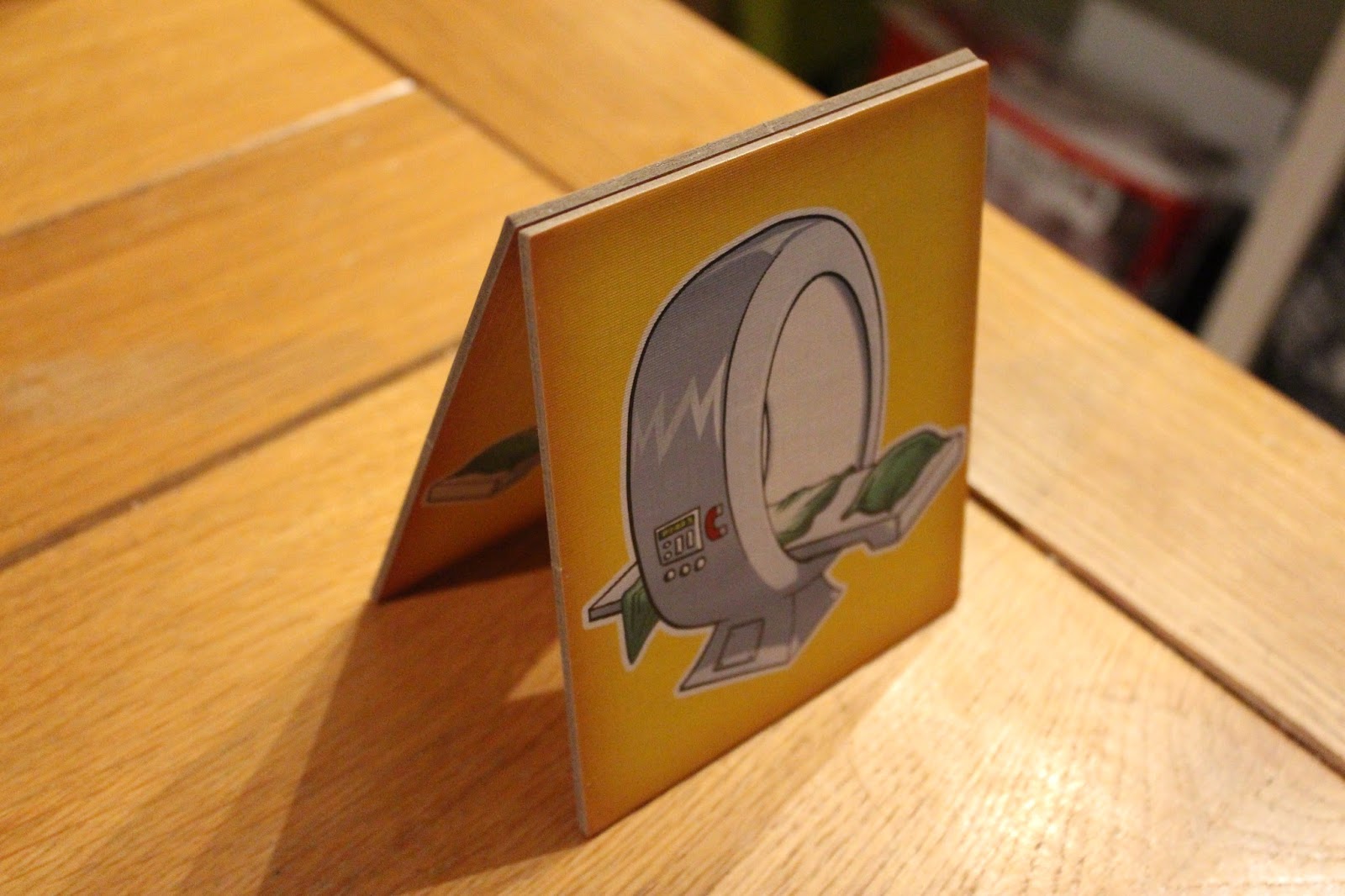 # Scanner : l’équipier doit construire un scanner avec les 2 cartes scanners (en les mettant l’une contre l’autre), il doit ensuite faire passer la carte patient dans celui-ci et le responsable la récupère de l’autre côté. Certaines cartes indiquent que le passage doit se faire avec des pinces. Si le scanner s’effondre, on recommence.