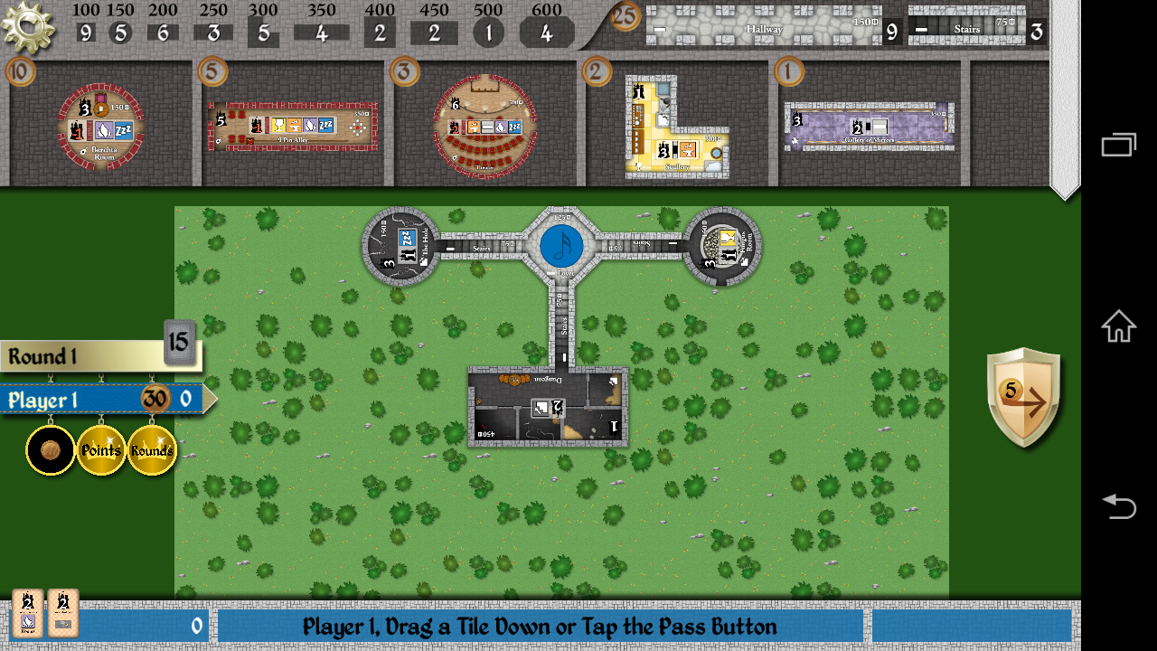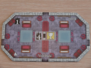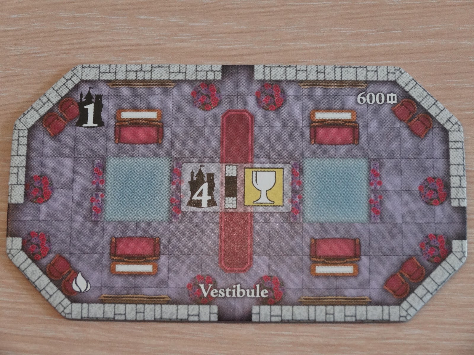 Chaque joueur dispose d’un hall d’entrée auquel nous allons ajouter tour à tour une pièce que nous aurons au préalable achetée.