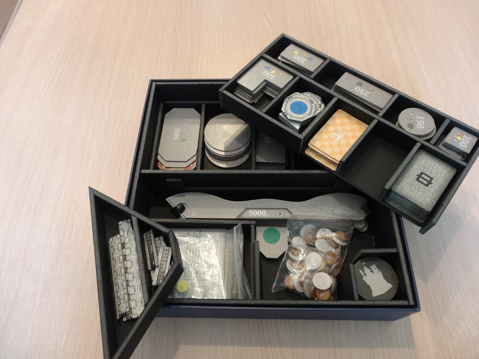 – Le déjà tout-fait : vous avez envie d’un insert mais nous n’avez vraiment pas envie de chipoter ? Bien, la société américaine The Broken Token vous offre des solutions de rangements toutes faites pour bons nombre de jeux et tous les mois ce nombre grandit. Evidemment, il faudra, à ce moment, mettre la main au portefeuille et j’avoue que les prix sont assez rédhibitoires en ce qui me concerne. Comptez environ 30$ pour un insert, ce qui double quasiment le prix de votre jeu mais la qualité est là.