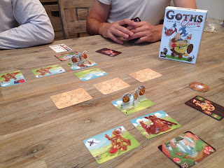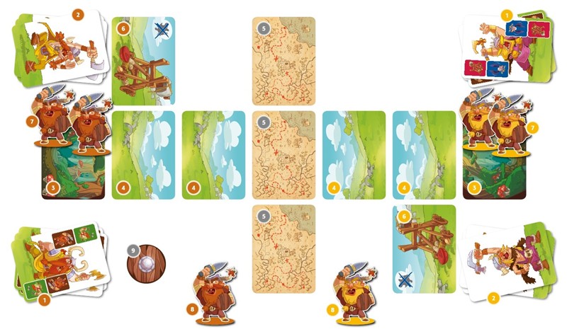 Jeu pour 4 joueurs, ceux-ci se répartissent en 2 clans de 2 joueurs. L’un jouera les Ostrogoths (orange) et l’autre les Wisigoths (jaune).