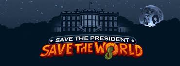 Mais… au milieu des décombres, les silhouettes de quelques individus – braves touristes venus accomplir leur devoir de patriotes – se dressent comme un ultime et dernier rempart face à l’anéantissement de notre société… Avec un seul mot d’ordre : SAVE THE PRESIDENT, SAVE THE WORLD »