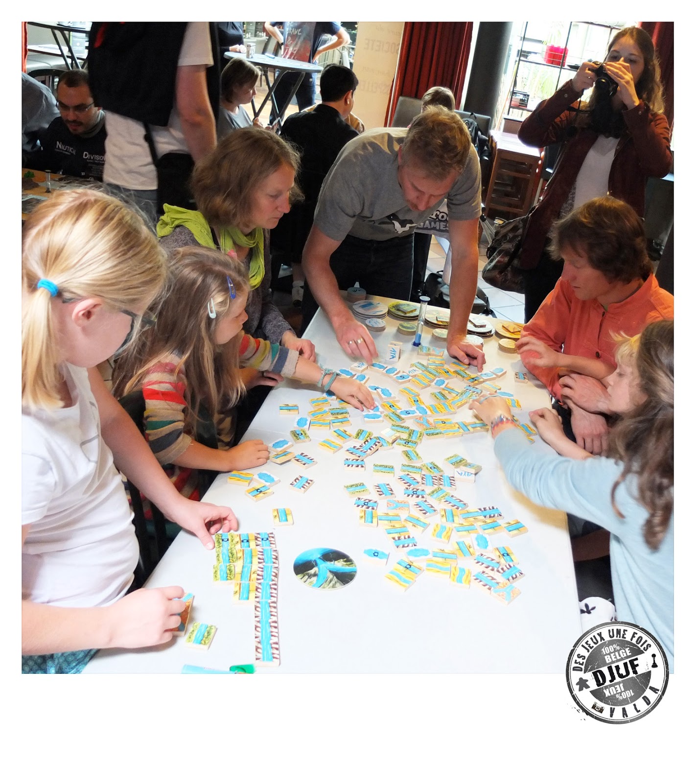 En 2015, j’ai pu réengager quelqu’un à temps partiel et le manque était tel chez les premiers participants qui m’en parlaient tout le temps que je ne pouvais que répondre à leurs attentes. Et pour cette édition, j’ai vu plus large : ouverture aux enfants avec jeux orientés familles dès l’après-midi, expos, conférences, tournoi de Mölkky dans un parc, bourse aux jeux,… ça partait dans tous les sens. Et sur 7 lieux. Certains s’étaient retirés pour raison de manque de rentabilité. On ne peut pas demander à tout le monde de consommer partout, c’est l’un des problèmes de la formule, j’essaie que tout le monde s’y retrouve mais ce n’est pas toujours facile. Mais d’autres lieux ont fait leur apparition comme la Librairie Jaune ou Kylna Art Gallery par exemple. Et j’ai adoré l’idée d’élargir l’offre d’espace avec des lieux originaux autres que des salles à l’arrière des bars. Jouer dans une librairie et un magasin de déco, quel pied !