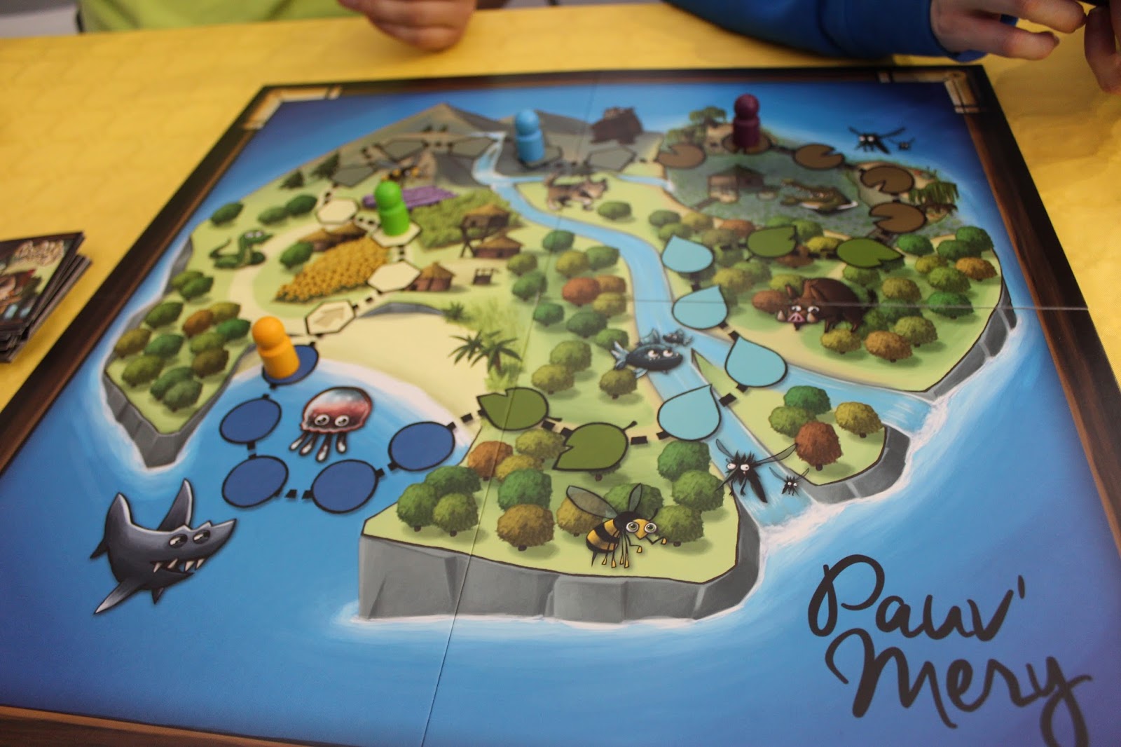 Imaginons… Vous atterrissez dans la zone « mer », un joueur peut vous balancer une carte requin, et un second joueur peut décider, s’il le veut, de doubler celle-ci (pour jouer 2 cartes en même temps, il