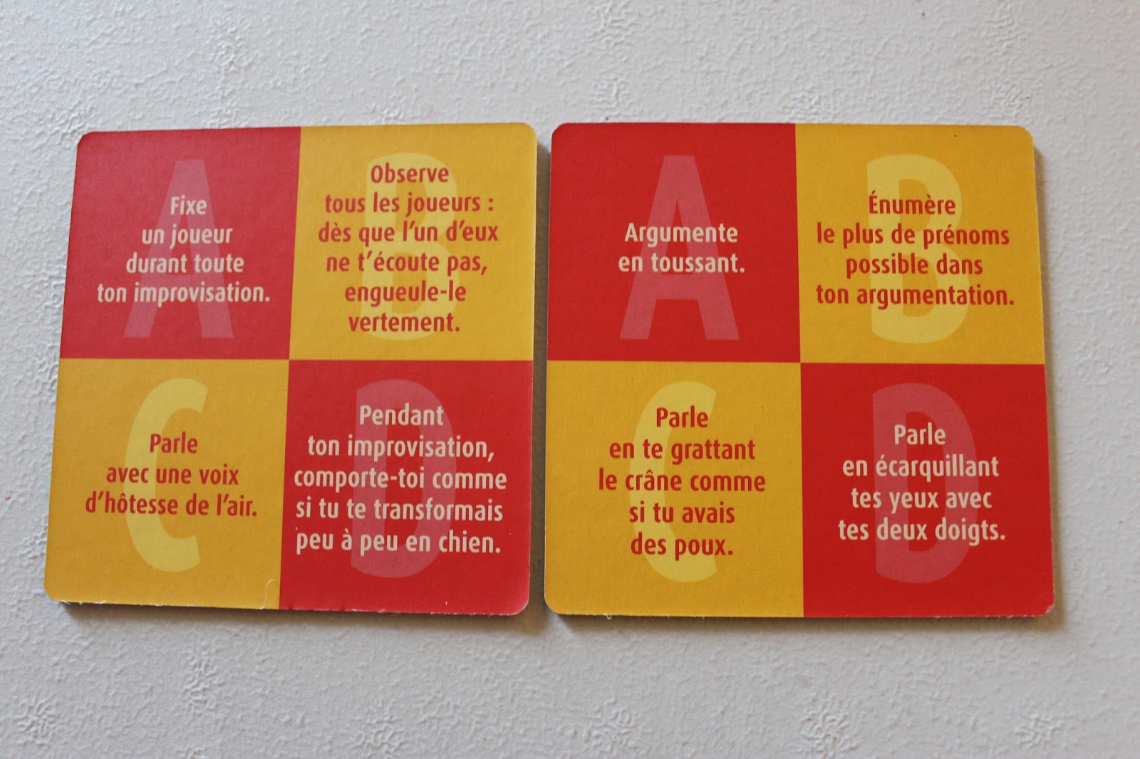 Ce n’est pas pour rien que ce jeu est joué et approuvé par la Ligue d’Impro. Et oui, il s’agit vraiment d’un jeu d’improvisation. Par contre, pas besoin d’être un expert pour prendre du plaisir. J’ai ri et pas qu’une fois. Parfois, juste choisir le challenge en fonction du thème pour votre voisin et voir sa tête quand il en prend connaissance est déjà une partie de plaisir. Les textes des personnages sont aussi source à rire.