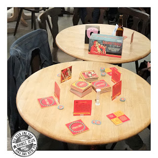Au vu de l’action se déroulant dans un bar, je les avais contactés pour qu’ils participent à notre premier soirée « Des Jeux, Des Bières, et plus qu’une fois », ce qu’ils avaient accepté avec grand plaisir. J’espérais avoir l’occasion de vous le présenter avant celle-ci mais suite à un petit contretemps, je le découvrais physiquement en même temps que nos visiteurs. Et au vu des éclats de rire et de la bonne humeur se dégageant de leur table et des quelques tours de jeu auxquels j’ai pu assister, j’avais sacrément envie de me lancer à mon tour.