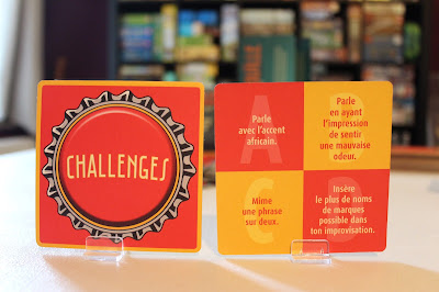 Il y a 30 sous-bock « Thèmes » en comprenant chacun 4 différents. Et 20 sous-bock « Challenges » avec également 4 différents dessus. Bref, de quoi faire de nombreuses parties sans repasser par les mêmes sujets.