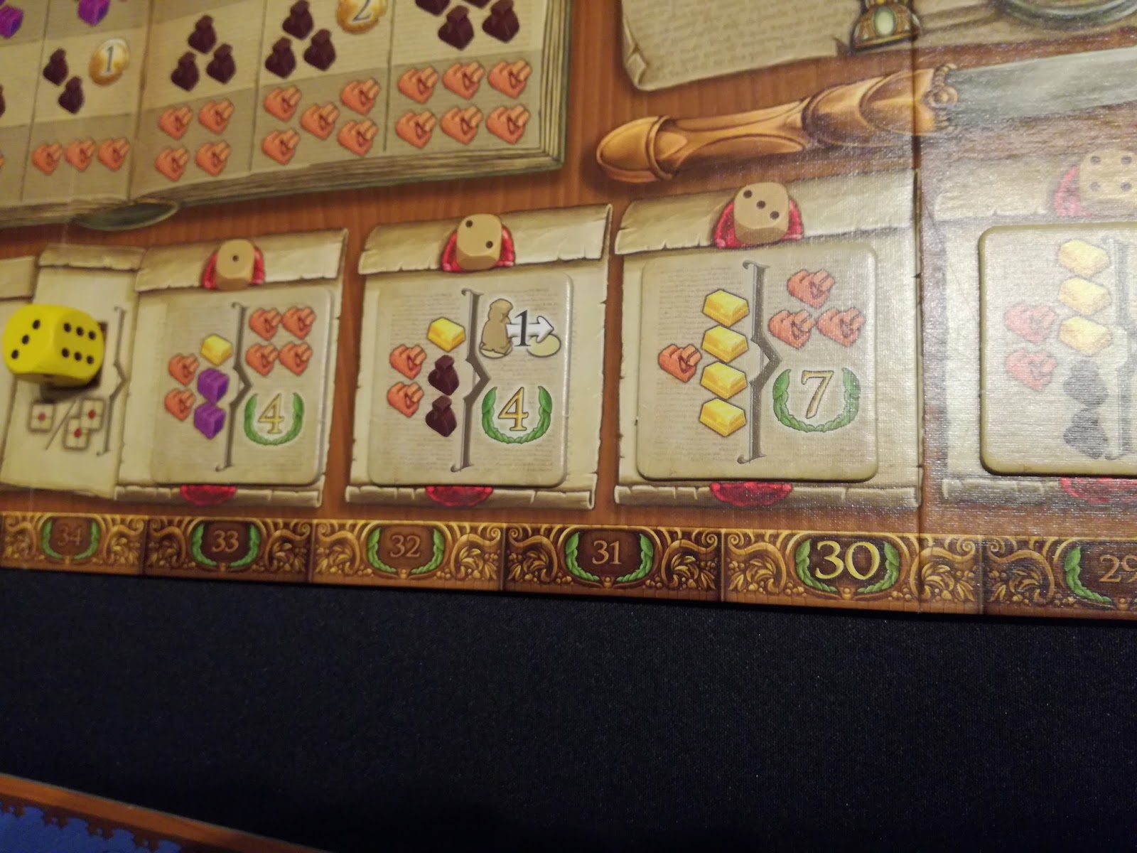 Donc, là, ça commence à devenir assez calculatoire car vous allez claquer des dés pour prendre une action mais il faudra bien choisir lesquels vous allez placer.