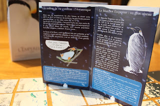 Le livret de règles d’une vingtaine de pages en consacre 8 aux manchots Empereur. On y parle de son milieu de vie, de qui il est, de son style de vie et de l’influence de l’homme sur celui-ci.