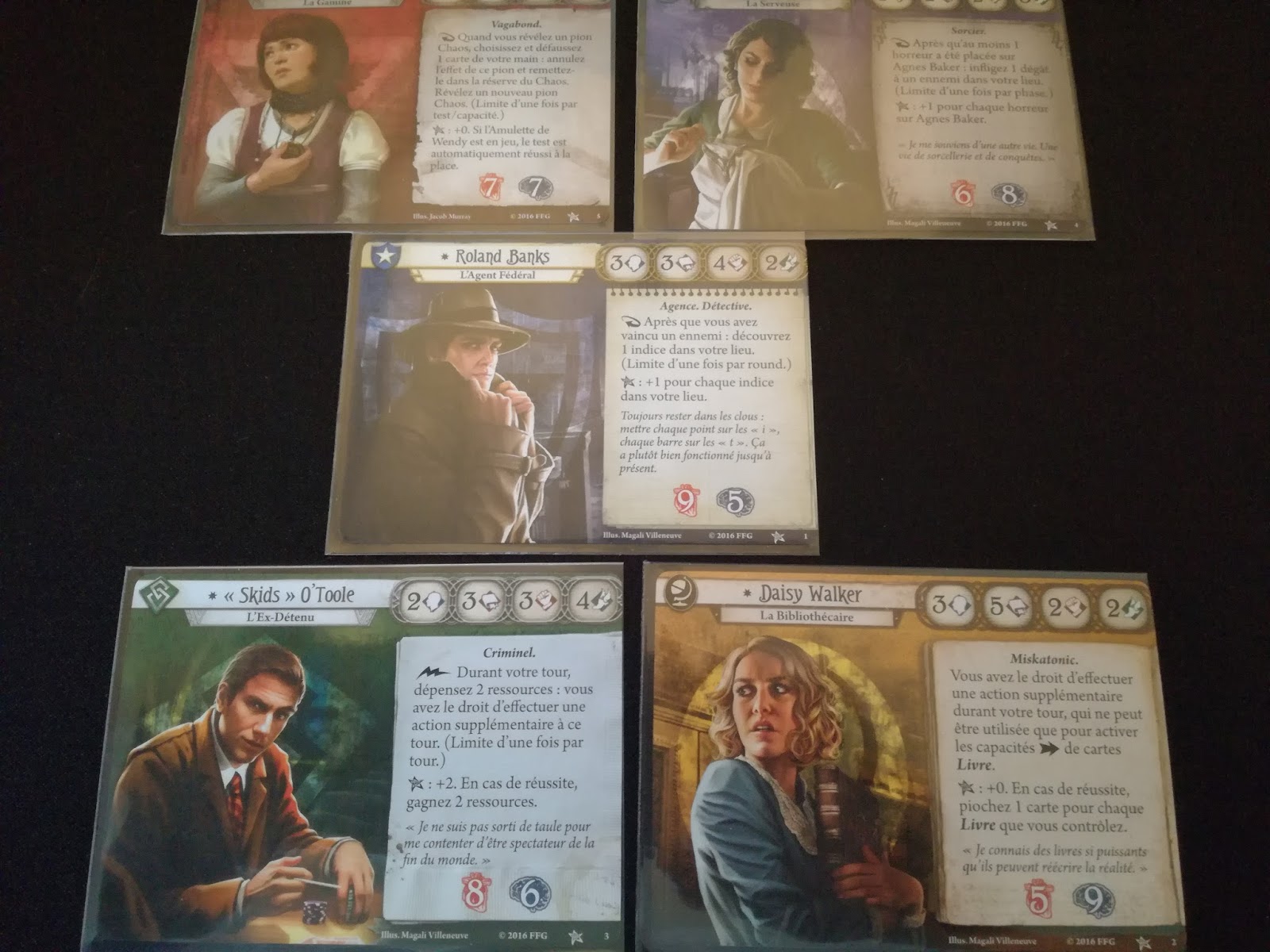 En début de partie, chaque joueur va choisir un investigateur. Ces investigateurs sont répartis en 5 classes :