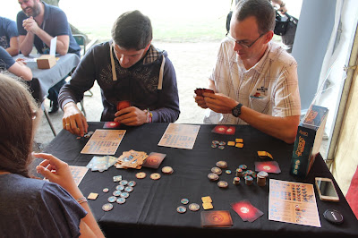 5èmeédition de ce festival Bruxellois. Et oui, on ne dirait pas au vu de la qualité de cette édition qu’ils n’en sont qu’à la 5ème… Celle-ci se déroulait pour la seconde année au Cinquantenaire avec une adaptation du site. En effet, la salle du musée faisait place à un chapiteau placé en contre bas des arches du Cinquantenaire (et ça avait de la gueule, quand tu vois celle-ci au-dessus de ta tête au travers de la bâche transparente du chapiteau). Adaptation qui, selon nous, fonctionne mais a engendré une répartition sur le site où se situaient éditeurs plus lente. Cette répartition a du coup boosté les associations, protos et tournois ; pas pour nous déplaire car le matin était le moment idéal pour tester les jeux très demandés.