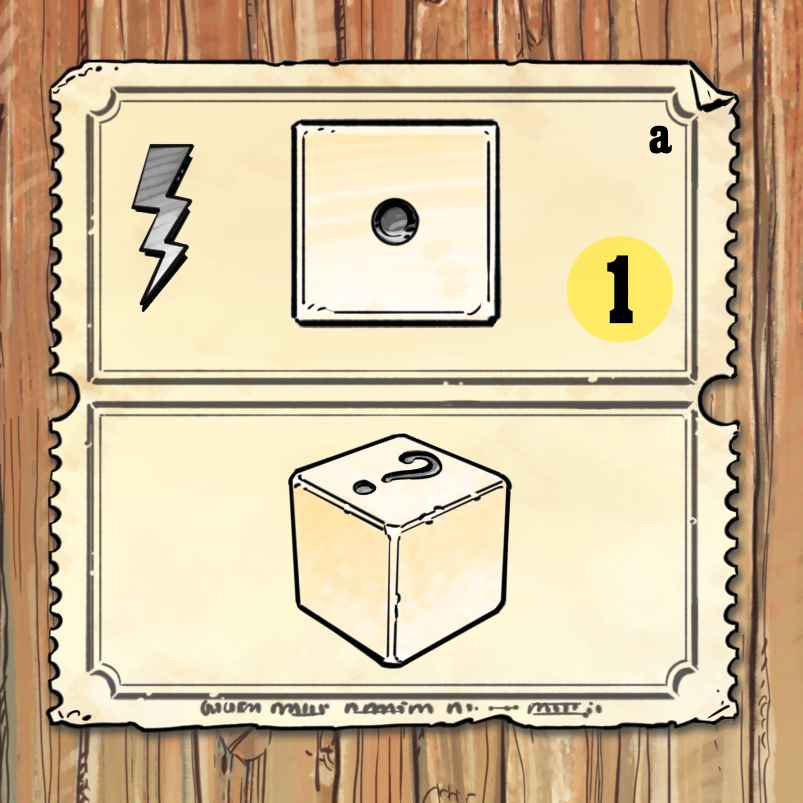 3. Augmenter la puissance de notre locomotive : Le dé blanc indique la case que vous cocherez dans votre locomotive. Chaque case cochée augmente sa puissance de 1 et permet de livrer à autant de tronçons de rails.