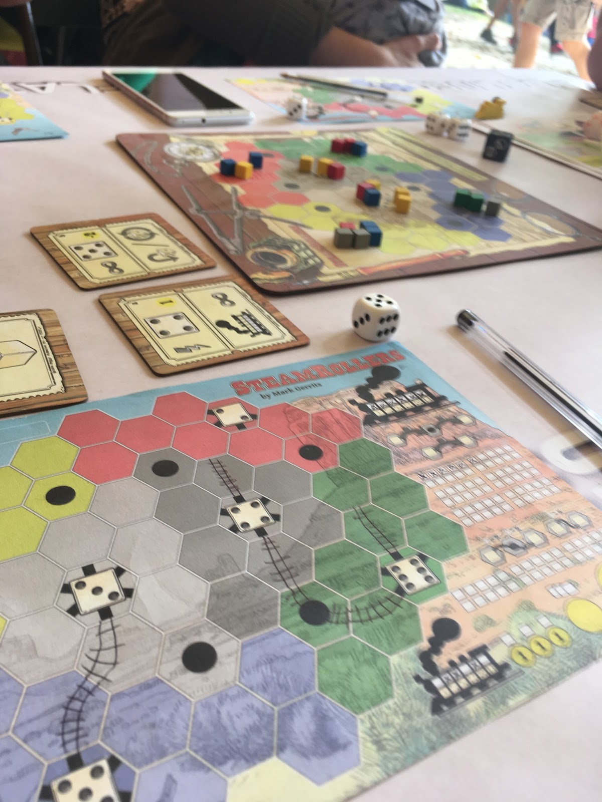 Lors de ce dernier BGF, j’ai enfin pu tester SteamRollers de Mark Gerrits. Pourquoi enfin « pu tester » ? Tout simplement parce que je vois tourner ce jeu depuis au moins 2 ans, que je me dis « ça a l’air chouette, faudrait que je l’essaye » et qu’au final, je l’ai jamais fait. Je pense que tout le monde sait de quoi je parle ;o)