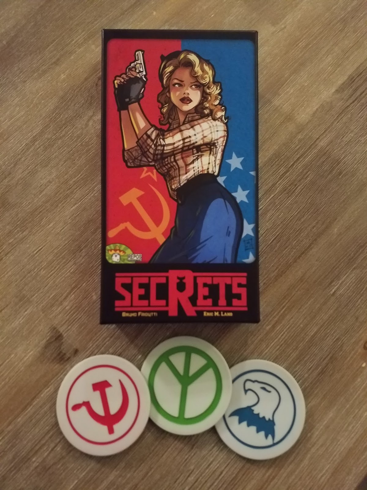 Secrets est un jeu à identité secrète : chacun peut appartenir à la CIA ou au KGB ou encore être un Hippie. Le jeu se gagne en équipe pour les services et en solo pour les Hippies.
