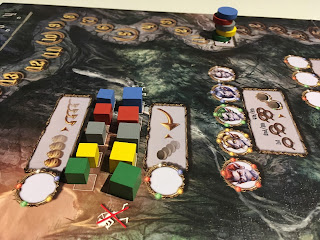 Si ce n’est pas le cas, l’or et l’argent sont remis dans le stock. Et le joueur qui est le dernier dans l’ordre du tour (grands cubes) renvoie un de ses Pixies actifs comme esclave dans la mine.