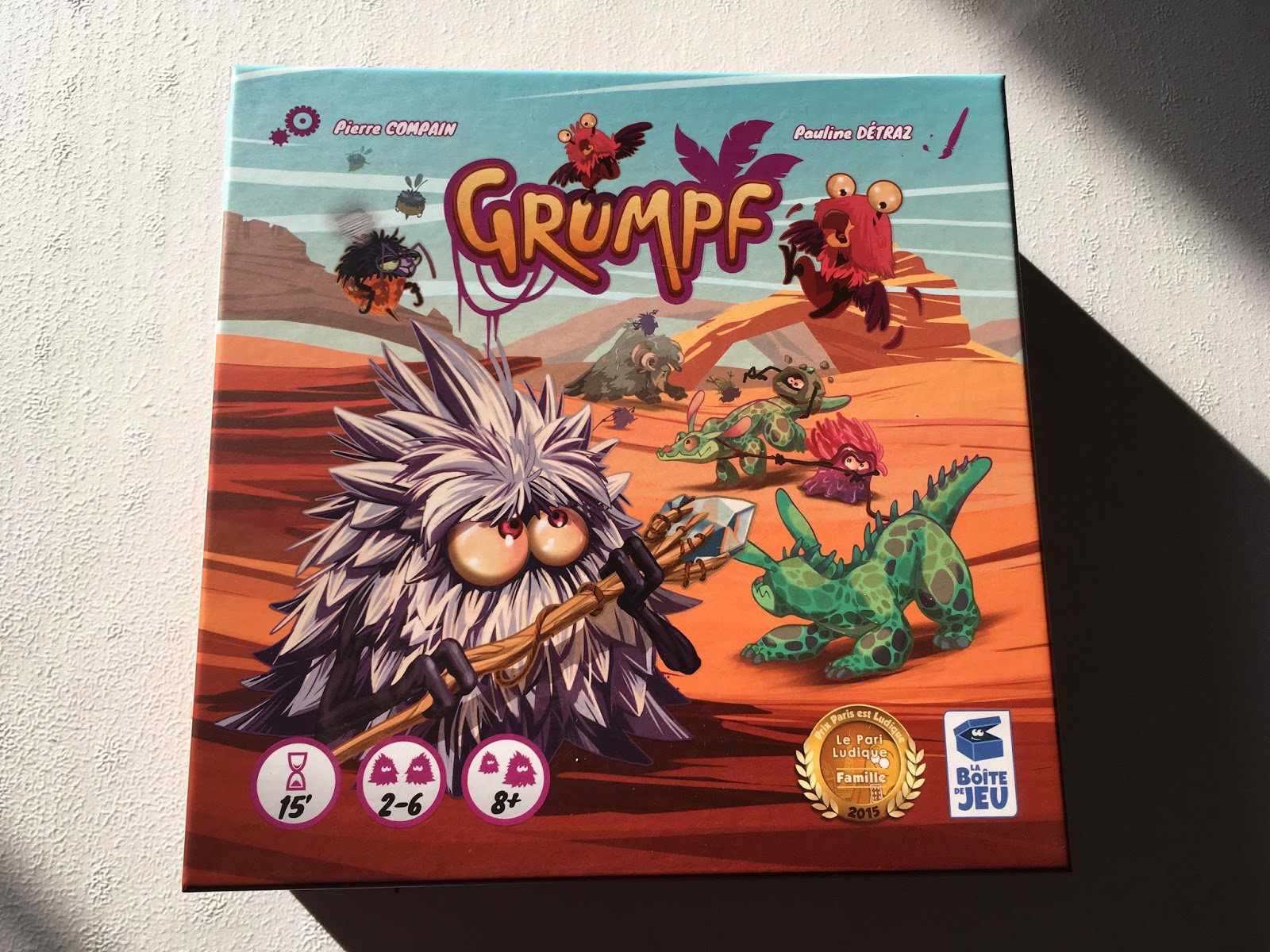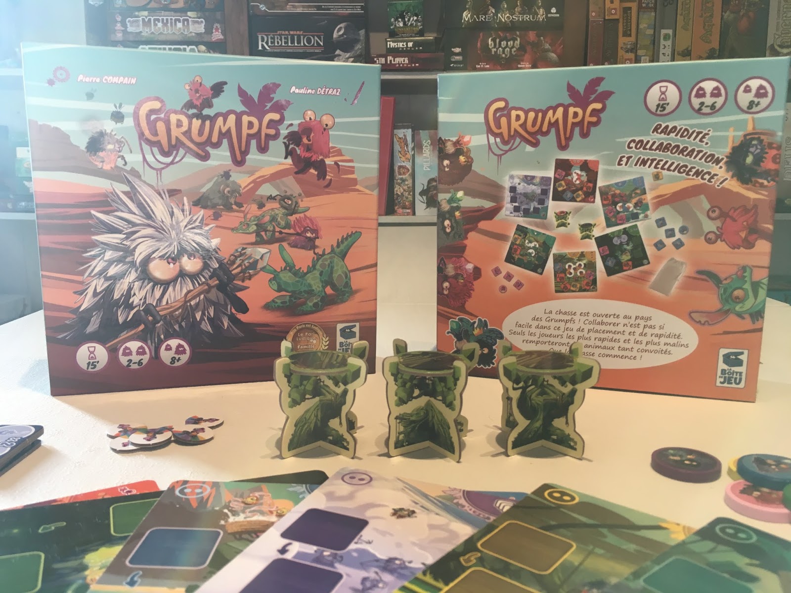 Pierre nous livre ici un tout bon premier jeu et on a hâte de voir ce qu’il nous sortira après ça. Grumpf est un jeu facile mais pas que, la rapidité fait beaucoup mais prendre les bonnes décisions, profiter des opportunités et faiblesses des autres également. Il est accessible et plaira à pas mal de monde je pense.