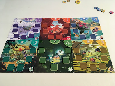 Chaque joueur aligne ses pions animaux collectés et tente de faire des séries d’animaux différentes.