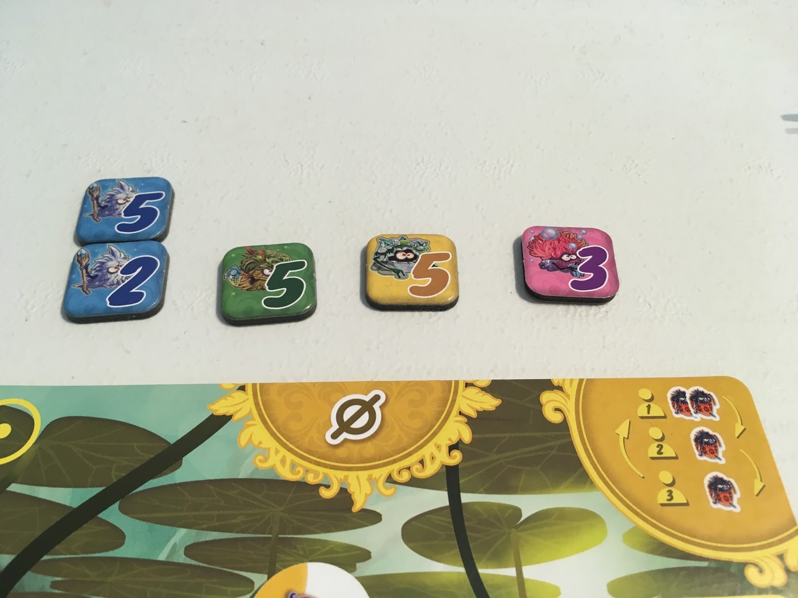 Les Grumpfs « massue » (sans valeur) peuvent être placés sur d’autres Grumpfs (d’autres clans) pour annuler la valeur de celui-ci (qui ne comptera donc plus lors du décompte du plateau).