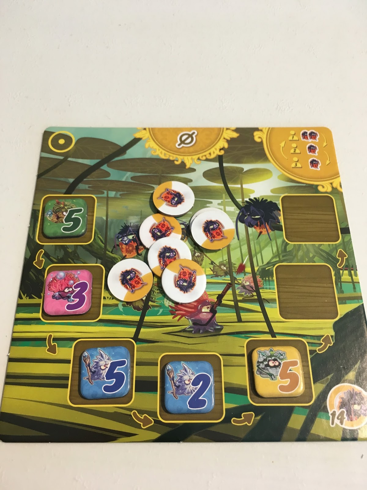 Ce sont donc les Grumpfs de tous les joueurs qui vont compter pour savoir si la condition d’un plateau est remplie : force totale, nombre, … on vous explique ça au point suivant J