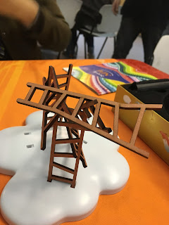 Alors là, on est vraiment dans une gamme de jeux pas pour moi. Un jeu d’adresse où il faut poser des échelles sur d’autres, évidement, il faudra tenir compte de l’équilibre de la structure d’échelle qui va se former et évoluer au cours du jeu. La matériel est superbe et thématiquement, c’est superbement exploité.