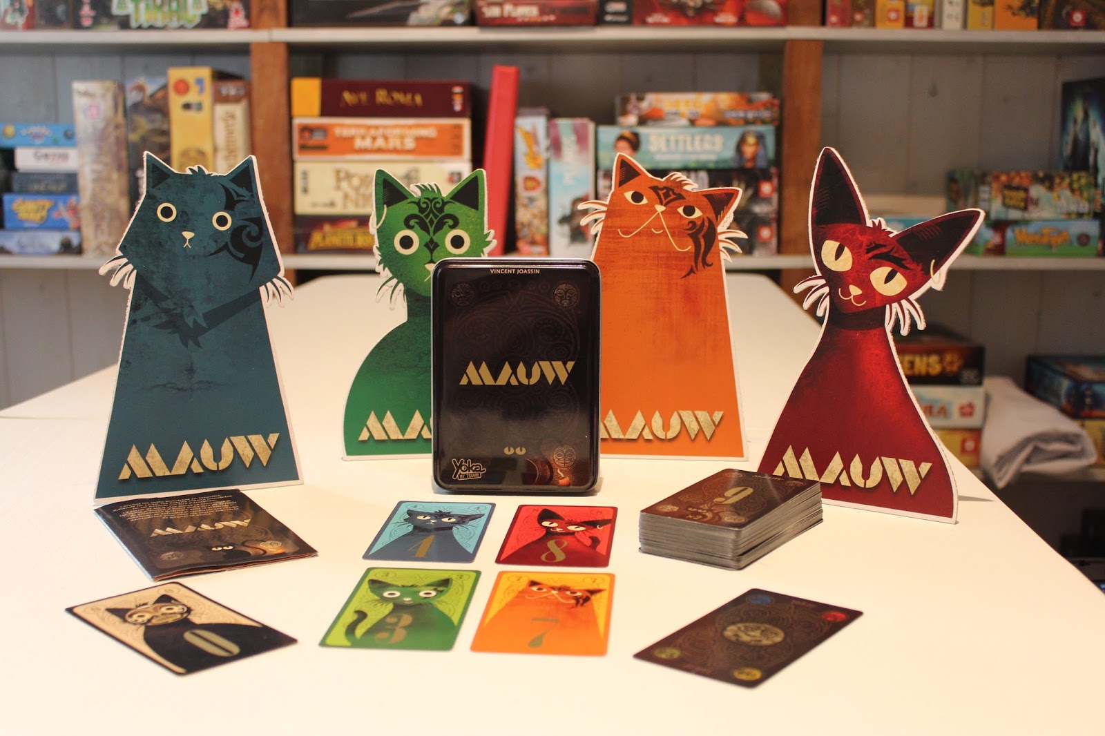 La première fois que j’ai entendu parler de ce jeu, c’était au BGF 2017. En effet, l’auteur ayant fait le graphisme du festival et en prime, le lascar étant de Ath, il n’en fallut pas plus pour que l’on soit présenté. Au coin d’un bar, il me montre une boîte métallique noire avec indiqué Mauw dessus. J’étais loin de me douter à ce moment très précis de l’excellence du jeu que j’avais sous les yeux… C’est un jeu belge de par son auteur et illustrateur (c’est la même personne, fait assez remarquable que pour le mettre en avant) mais si cela n’avait pas été le cas, ce jeu aurait été un coup de cœur.