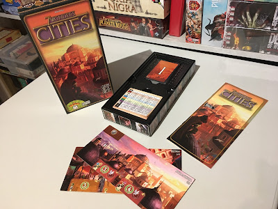 15 cartes Cities à ajouter à celles déjà disponibles dans l’extension. On suit alors la même mise en place qu’une partie avec l’extension Cities.