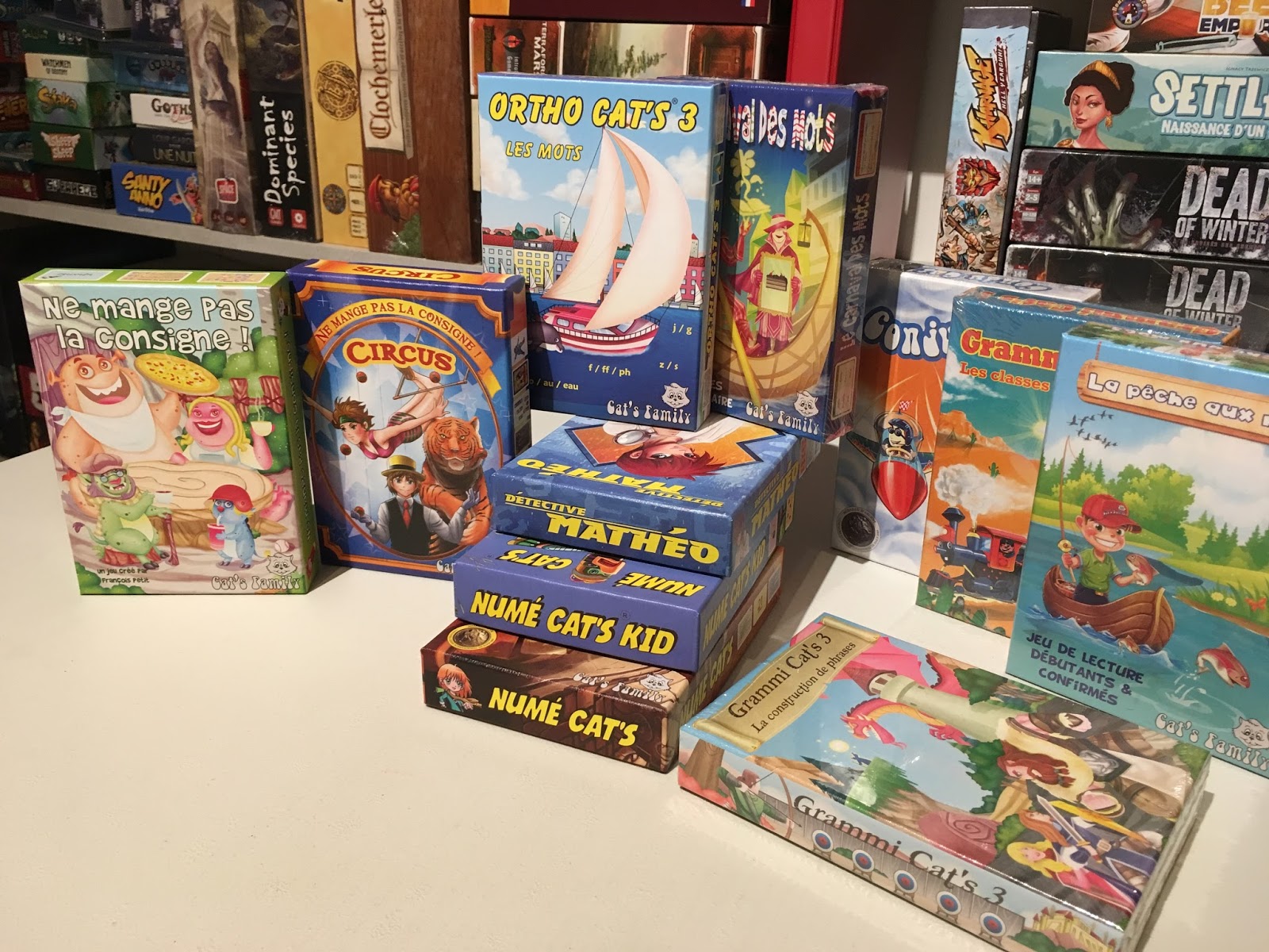 François est français, vous vous demanderez alors peut-être pourquoi nous vous parlons de cette gamme ? Tout simplement car, étant joueuse et maman, je m’intéresse de près aux jeux destinés aux plus petits et tout ce que le jeu peut leur apprendre, je ne pouvais pas passer à côté de cette gamme. Aujourd’hui, la gamme compte de très nombreux jeux (qui ont reçus plusieurs récompenses), car c’est bien ce qu’ils sont aujourd’hui, ce ne sont plus de simples cartes ternes à usage pédagogiques, mais bien des jeux illustrés, colorés, avec des graphismes attrayants pour le public cible. Certains jeux de la gamme se jouent à partir de 4 ans, mais à partir de 6 ans, la plupart est accessible.