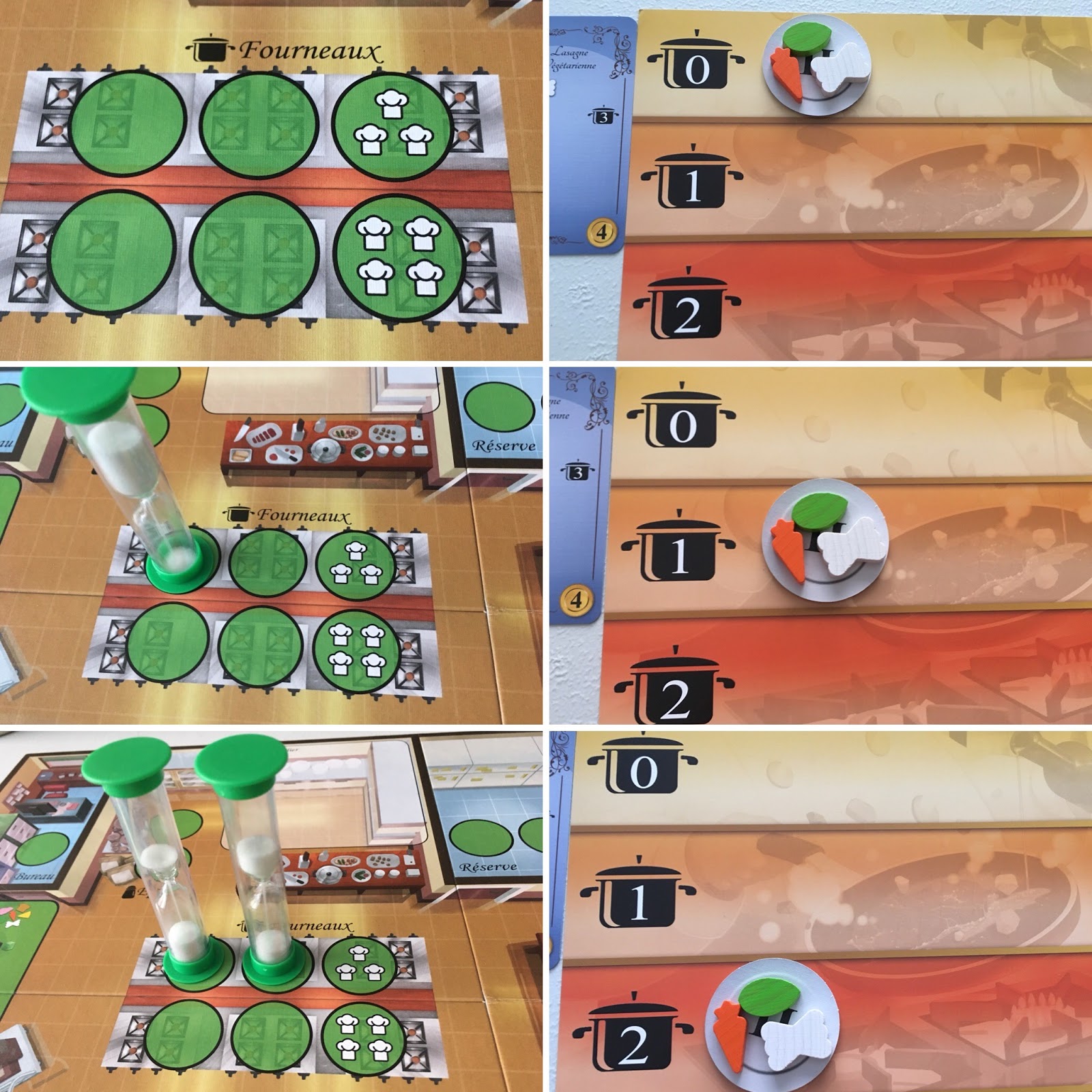 Chaque joueur aura son plateau individuel où il préparera et cuira ses plats.