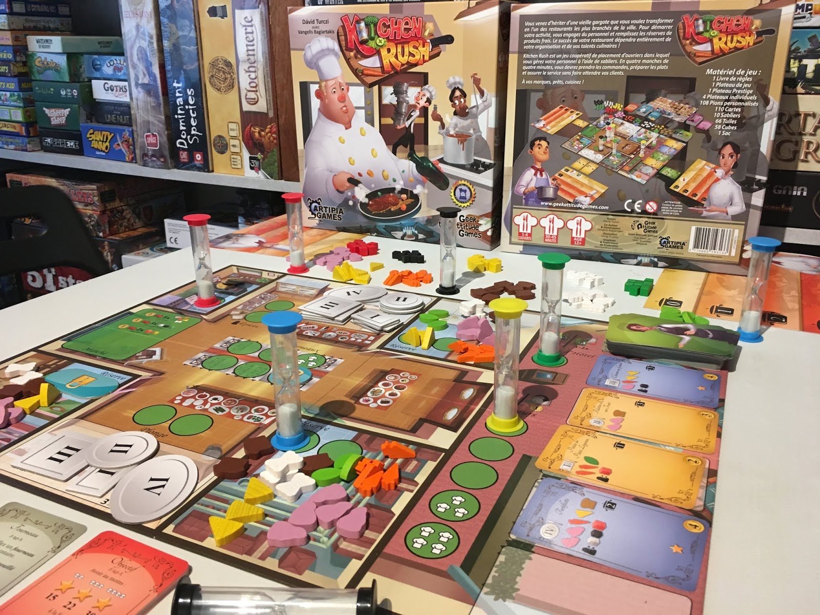 Kitchen Rush, c’est la dernière localisation de Geek Attitude Games, édition originale de Artipia Games. Et autant dire qu’il porte bien son nom. D’abord sceptique par la présentation (coopératif couplé à de la rapidité = pas mon style), ensuite totalement séduit. C’est donc avec grand plaisir que je vais vous présenter celui-ci.