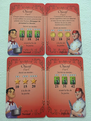 La partie se déroule en 4 manches durant lesquelles, en équipe, vous tentez de remporter la victoire en atteignant l’objectif choisi. Pour ce faire, vous allez prendre des commandes, préparer les plats et les servir aux clients. Vous devrez, à la fin de la 4ème manche, remplir les conditions de l’objectif.