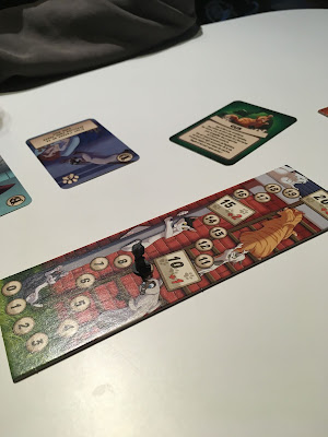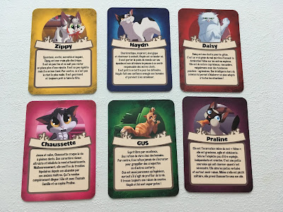 Chaque joueur choisit le chat qu’il incarnera et prend le cube coloré correspondant, il place ensuite celui-ci sur le zéro de la piste de score.