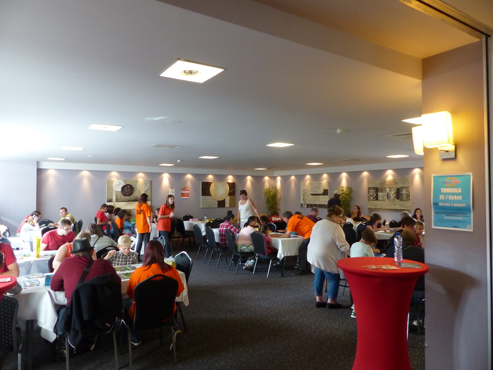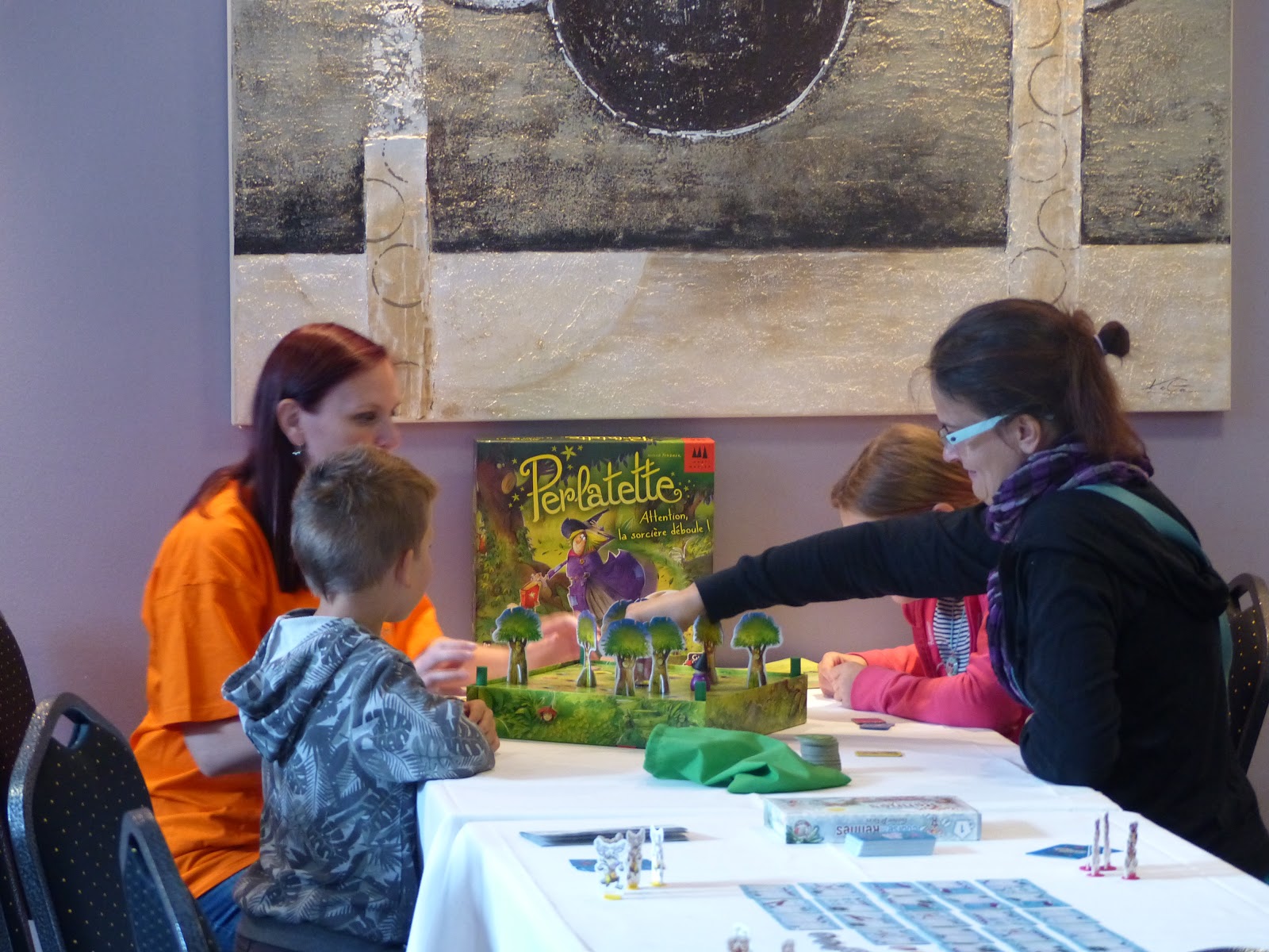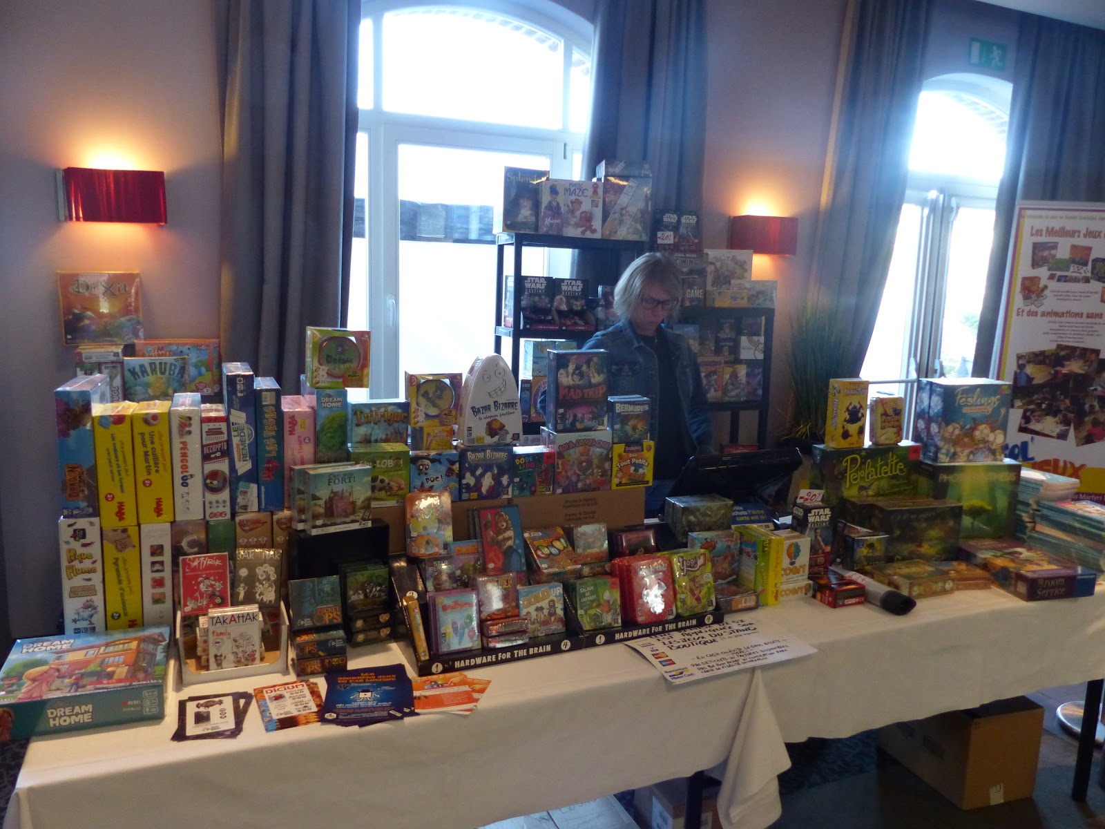 Le festival se déroule à l’intérieur de l’Hôtel Verviers. On y entre par l’entrée principale où l’on est directement accueillis par quelques jeunes stewards et hôtesses. Ceux-ci ne sont pas de l’hôtel, mais sont des étudiants de 6e de la section Auxiliaire administratif et d’accueil de l’institut Ste Claire de Verviers. On est donc très bien reçus, même si c’est un peu formel. Le festival étant gratuit, on peut directement se lancer dans la découverte des lieux : le festival s’étend dans plusieurs salles différentes : au rez-de-chaussée se trouvent les différents éditeurs et distributeurs (principalement belges, une fois), en sous-sol, on retrouve plusieurs associations ainsi que de nombreux jeux animés par des bénévoles ainsi qu’un espace enfants. Et pour les amateurs de tournois, un espace spécialement dédié est prévu.