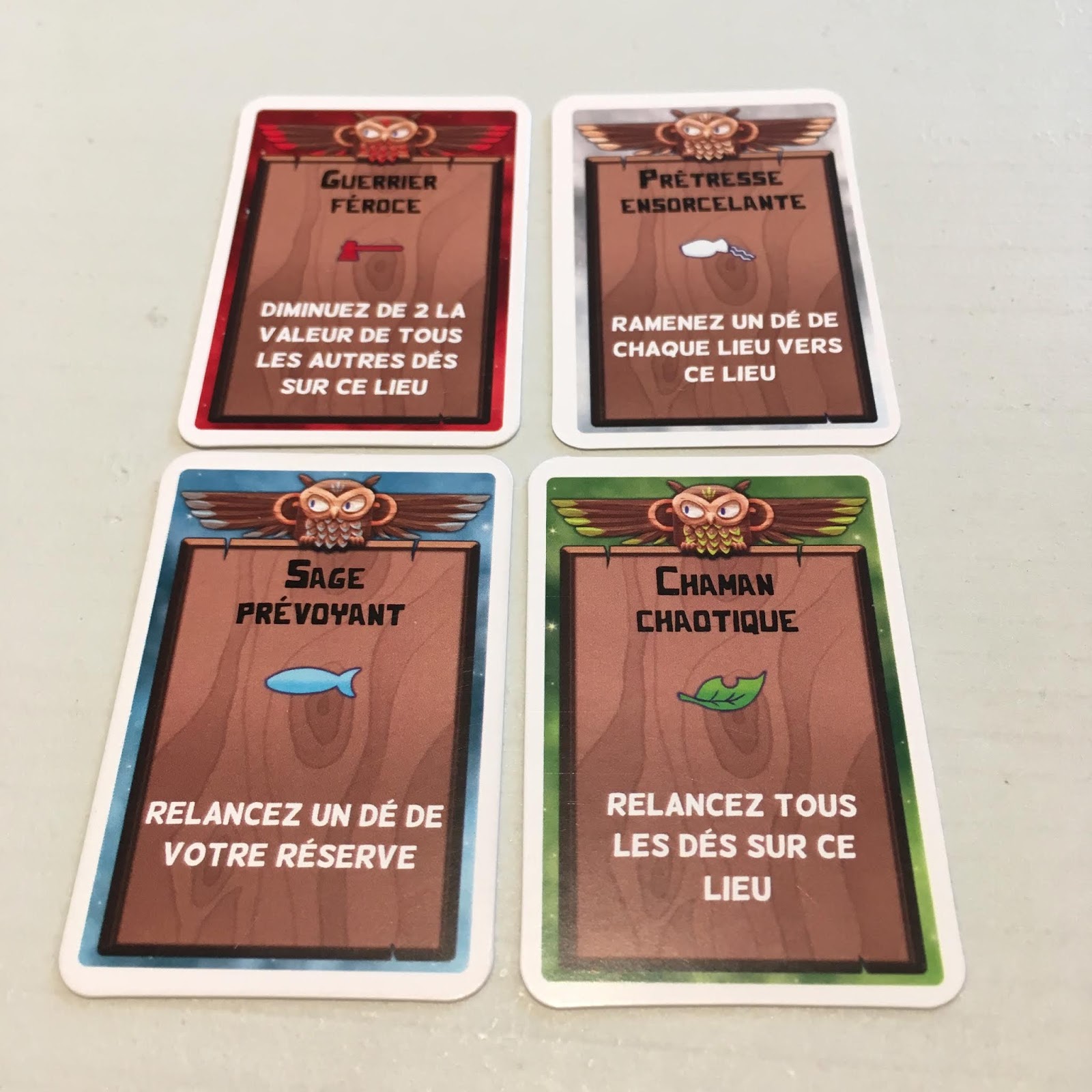 Les joueurs placent ensuite leurs dès un par un sur les divers lieux en fonction de leur intérêt pour le pouvoir du lieu mais également pour la valeur ou le symbole des cartes totem associées.