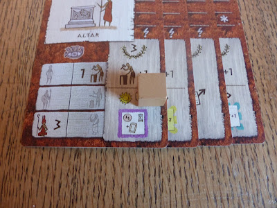 En plaçant la carte Altar, on choisit de marquer des points sur le symbole éclair. On en recevra donc 3. |
