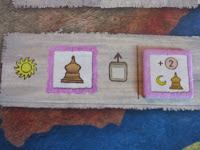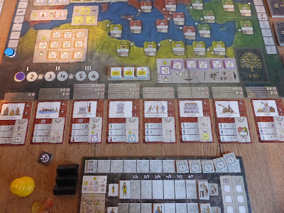Ici, il faut avoir une cité, un noble, deux artisans et deux marchands. Elle rapporte 3 points et une cité gratuite sur le lieu de notre choix |