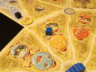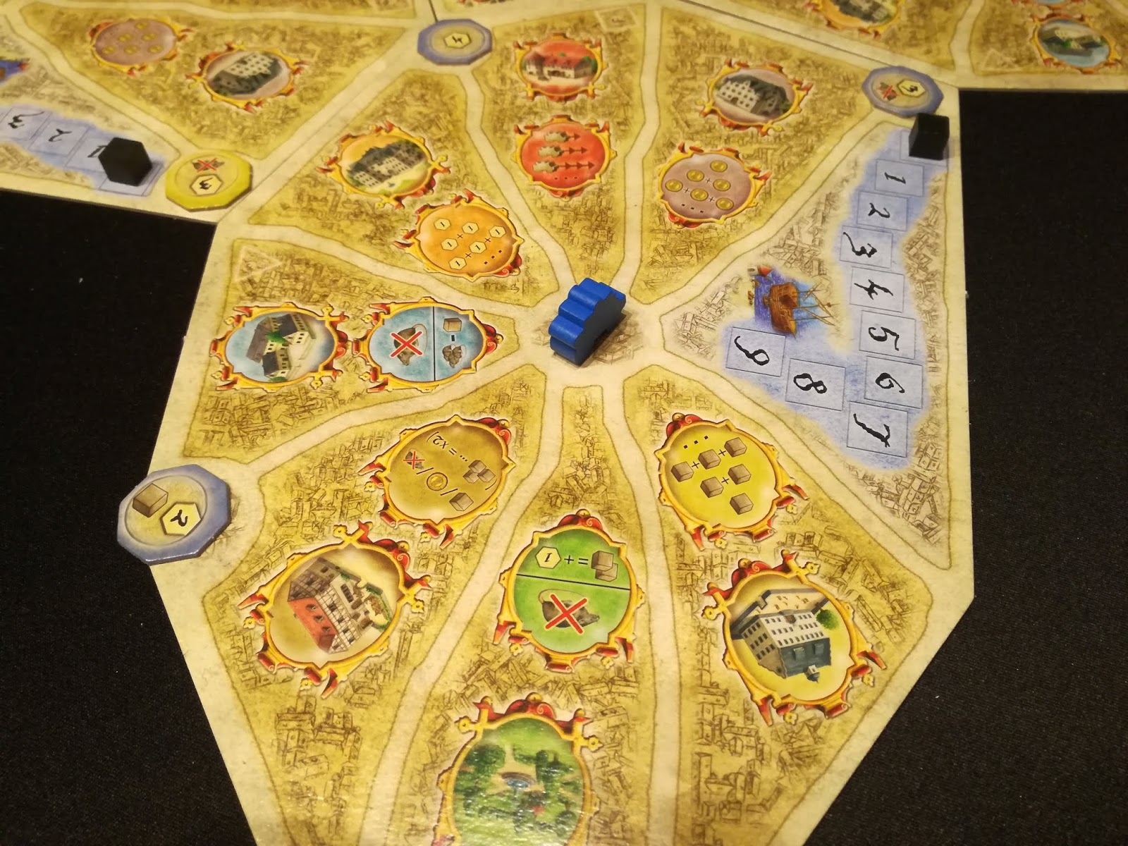 Il faut aussi bien faire attention à la peste car elle s’accumule et même si la perte de 2 PV’s et d’un conseiller n’est pas dramatique, on remarquera qu’il est bien plus difficile de diminuer son score de Peste quand il est à son maximum plutôt que d’essayer de le maintenir « à flot » tout au long de la partie.
