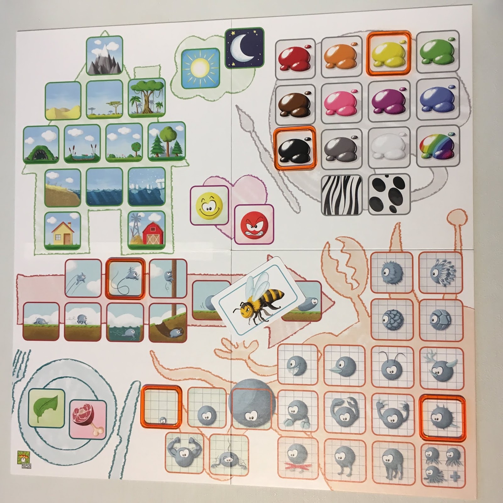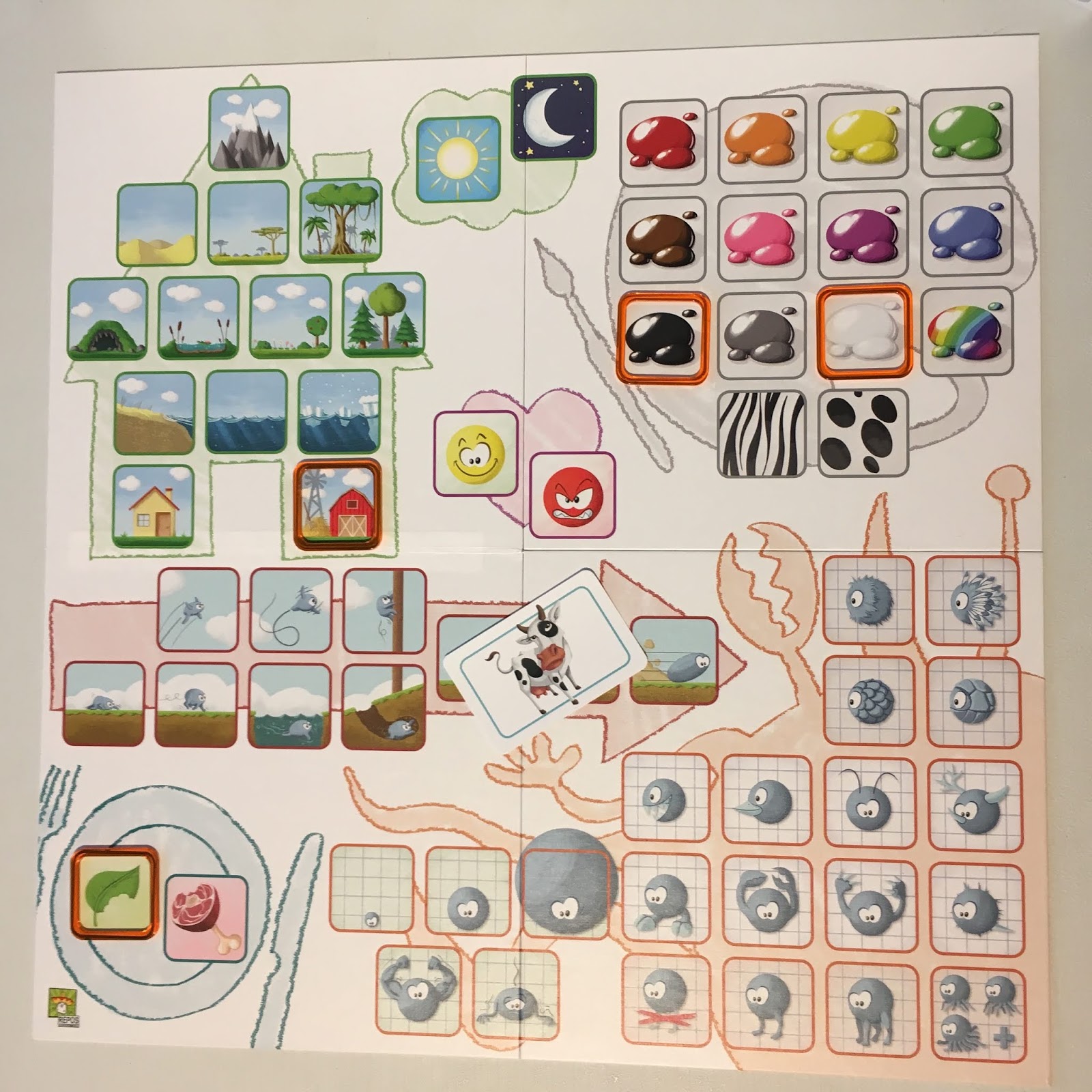 #3 : A partir de 6 ans, un seul enfant fait deviner au reste du groupe un animal. On joue alors avec 24 cartes de base. L’enfant qui fait deviner en pioche 2 et choisit celle qu’il fera deviner (l’autre étant défaussée).