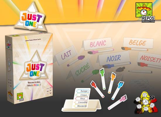 Repos Production n’en porte que le nom ; en effet, ils n’étaient pas au repos cette année… parmi les dernières sorties du grand belge de l’édition, nous pouvions retrouver Just One, un party game coopératif se jouant de 3 à 7 joueurs, le but étant de trouver des mots.