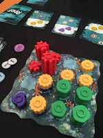 J’avais déjà testé le jeu à Ludinord cette année, et j’avais vraiment bien aimé. Magnifiquement illustré, c’est un jeu où l’on construit petit à petit un ensemble d’îles qui, si on s’y installe à la fin de l’une des 4 manches, nous permettront de marquer des points grâce à nos objectifs secrets. J’ai nettement moins apprécié cette partie que ma précédente, le jeu manquant un peu de rythme sur la longueur… Si vous désirez un avis complet, Al avait justement rédigé un article sur le sujet ici.