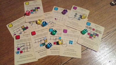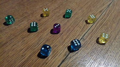 Par ailleurs, on nous conseille ici d’adapter le nombre de dés dans le sac en fonction du nombre de joueur, et j’approuve totalement, y compris en jouant sans l’extension.