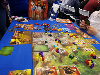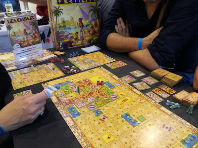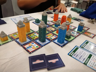 On retrouve deux connaissances belges par hasard en s’asseyant ce qui a donné une partie assez dynamique et agréable mais j’avoue que j’étais en mode « off » à ce moment et je n’ai strictement rien compris au comptage des points. Un jeu de pose de tuiles et de construction avec pas mal de restrictions. Un jeu sympatoche mais beaucoup trop banal et cher pour penser à craquer.