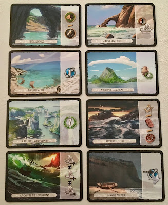 On trie les cartes Île par niveau et on les place face cachées accessibles à tous.