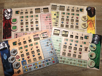 Pour chaque thème, chaque joueur aura son plateau individuel. Chacun de ses plateaux aura les mêmes différentes zones : les combinaisons de valeurs, les combinaisons de couleurs, la zone des bonus, le nombre de dés actifs, la réserve de 2 dés maximum et des zones spécifiques (selon chaque jeu/univers)