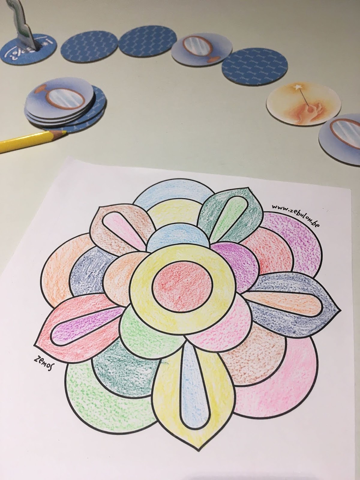 Note : il est possible de télécharger les mandalas sur le site de Zebulon, ils en proposent 4 différents.