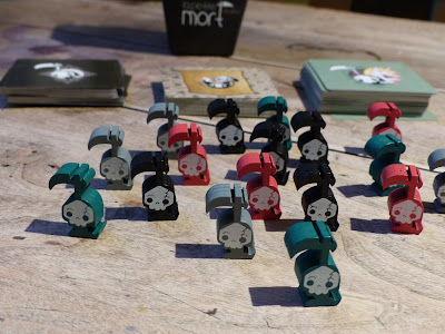 On retrouve aussi des pions en bois personnalisés à l’effigie des petites morts et quelques jetons Death Powa que nous utiliserons bien évidemment dans la partie.