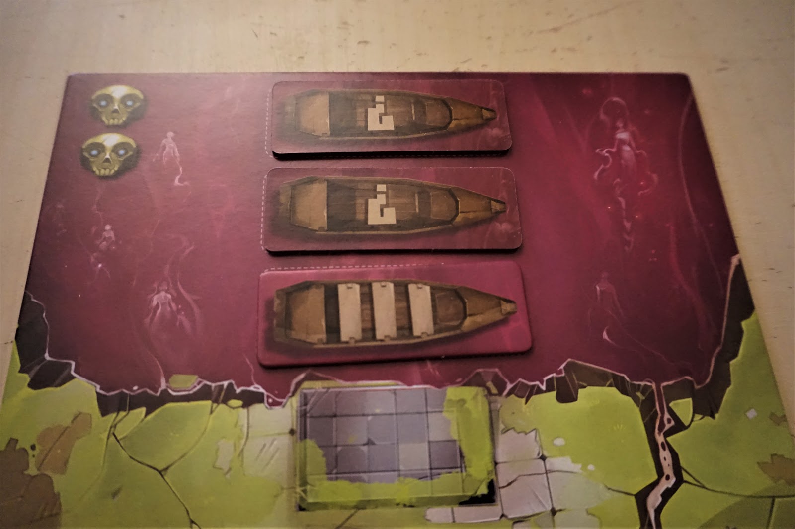 Seule UNE barque partira : la plus proche du rivage… Elle ne sera révélée que lorsqu’un joueur l’atteindra. Avant sa révélation, il est possible de la regarder secrètement OU de l’échanger avec une autre barque. Après avoir été révélée, plus de changement possible !