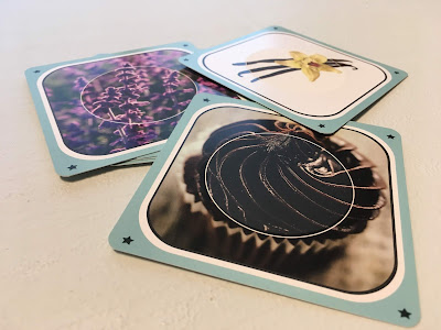 A côté, vous trouverez 10 cartes olfactives. Les joueurs en prennent connaissance au début de la partie (observation et mémorisation). Elles sont ensuite mise de côté. 6 cartes épreuve olfactives sont ajoutées aux 74 épreuves classiques et l’ensemble est mélangé.