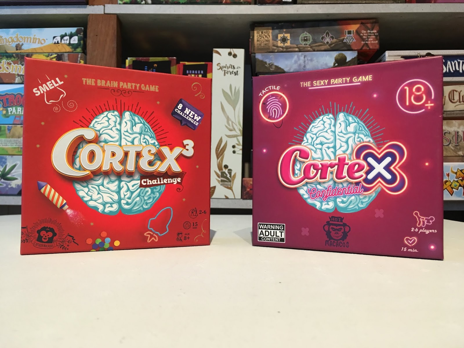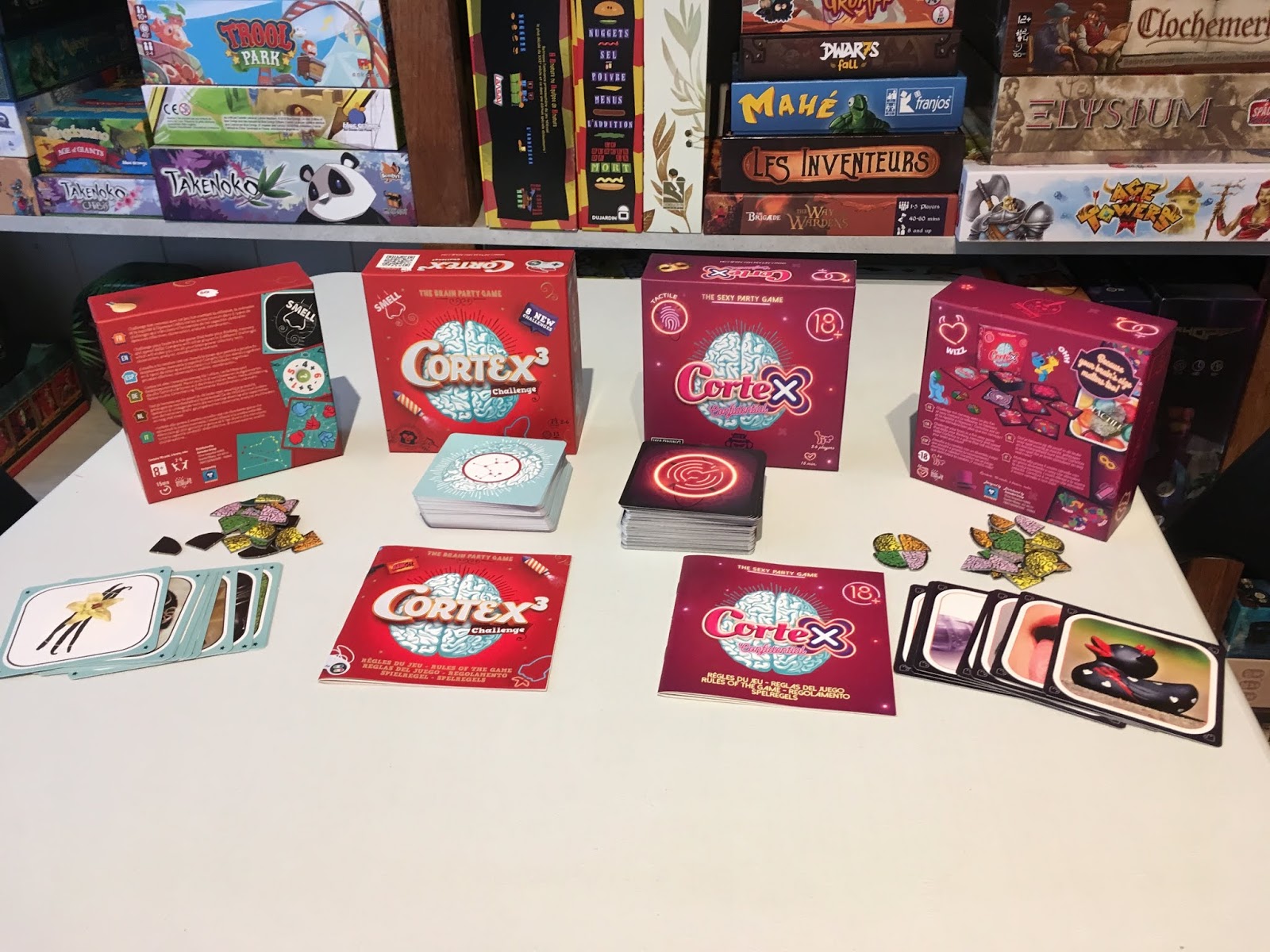 Actuellement, il y a Cortex Challenge 1, 2 & 3 (8+) / Cortex Challenge Kids 1 & 2 (6+), Cortex Challenge Géo (8+) et CorteX Confidential (18+). Egalement une version Cortex Challenge + qui est une plus grosse boîte toujours dans le même esprit.
