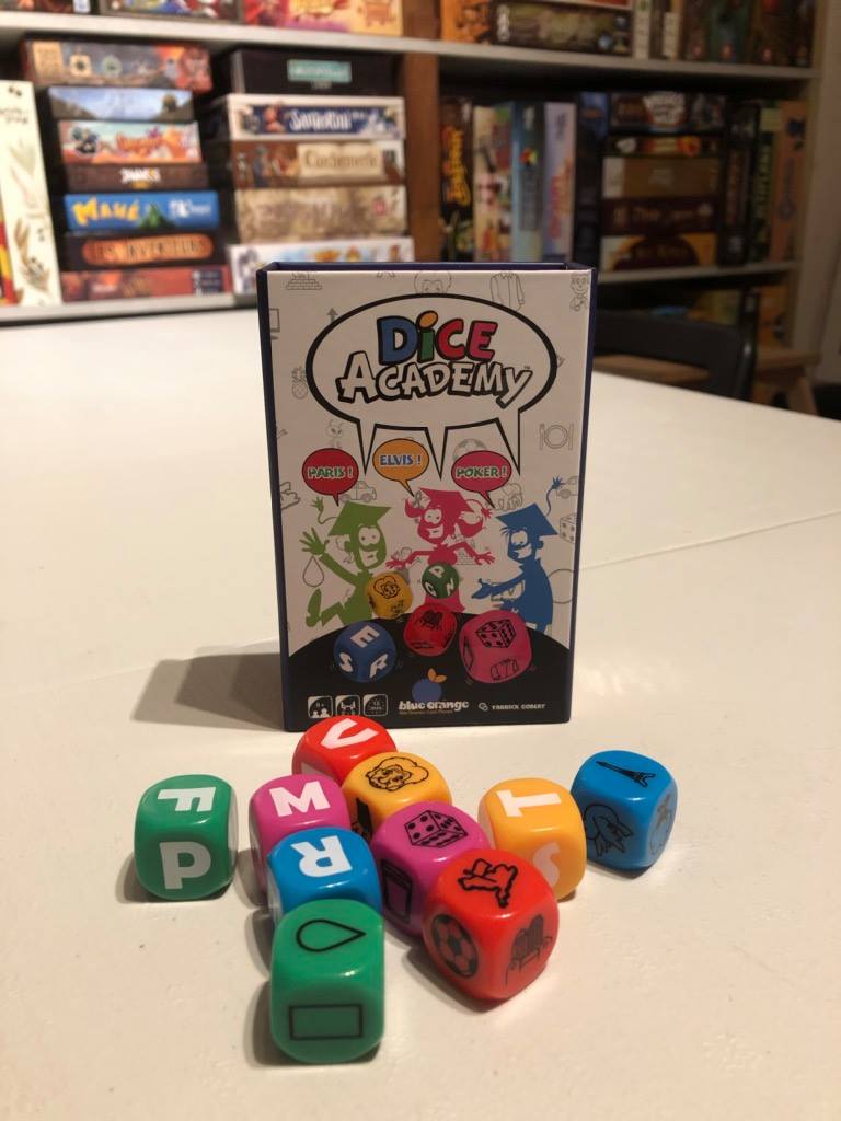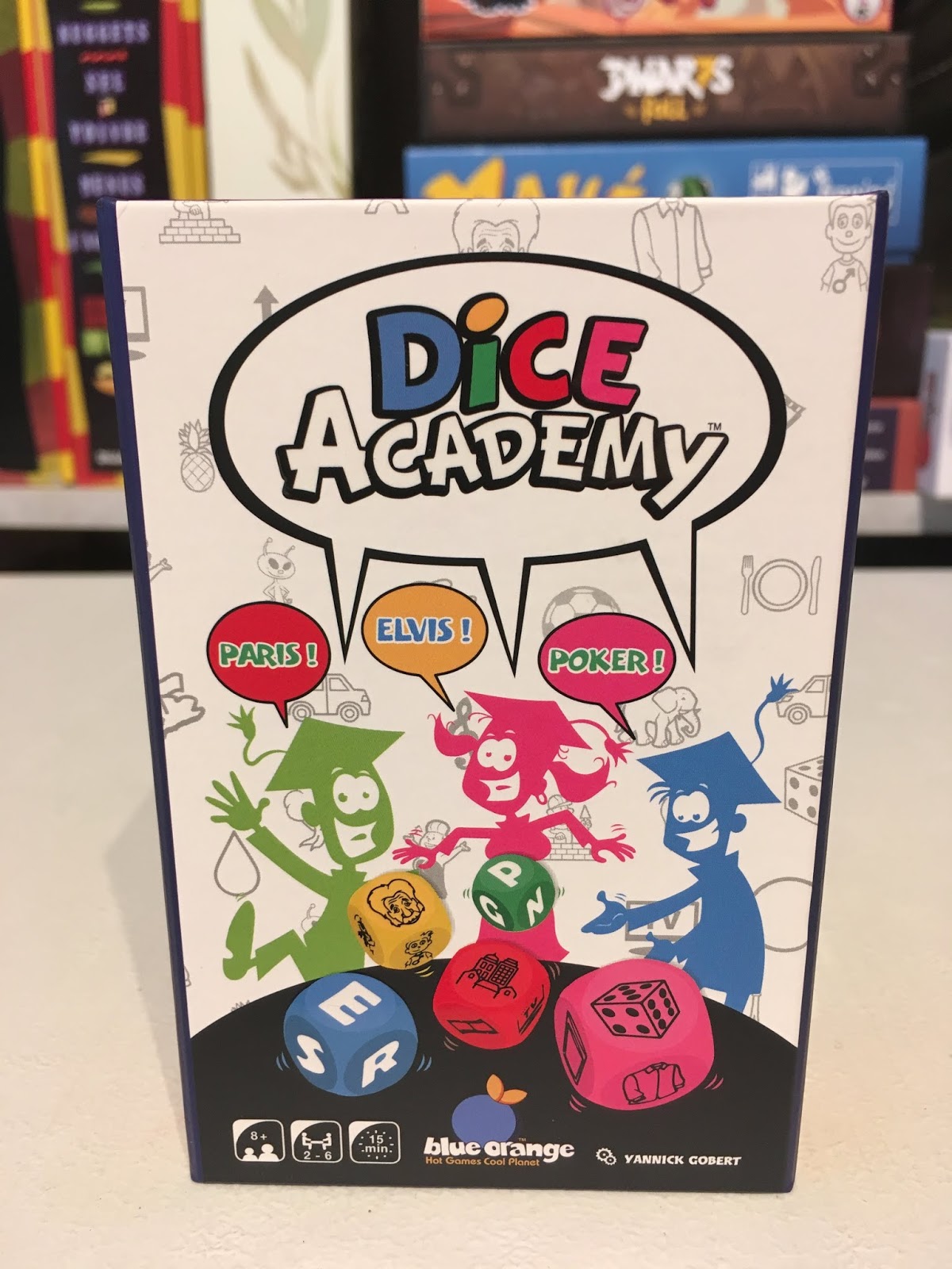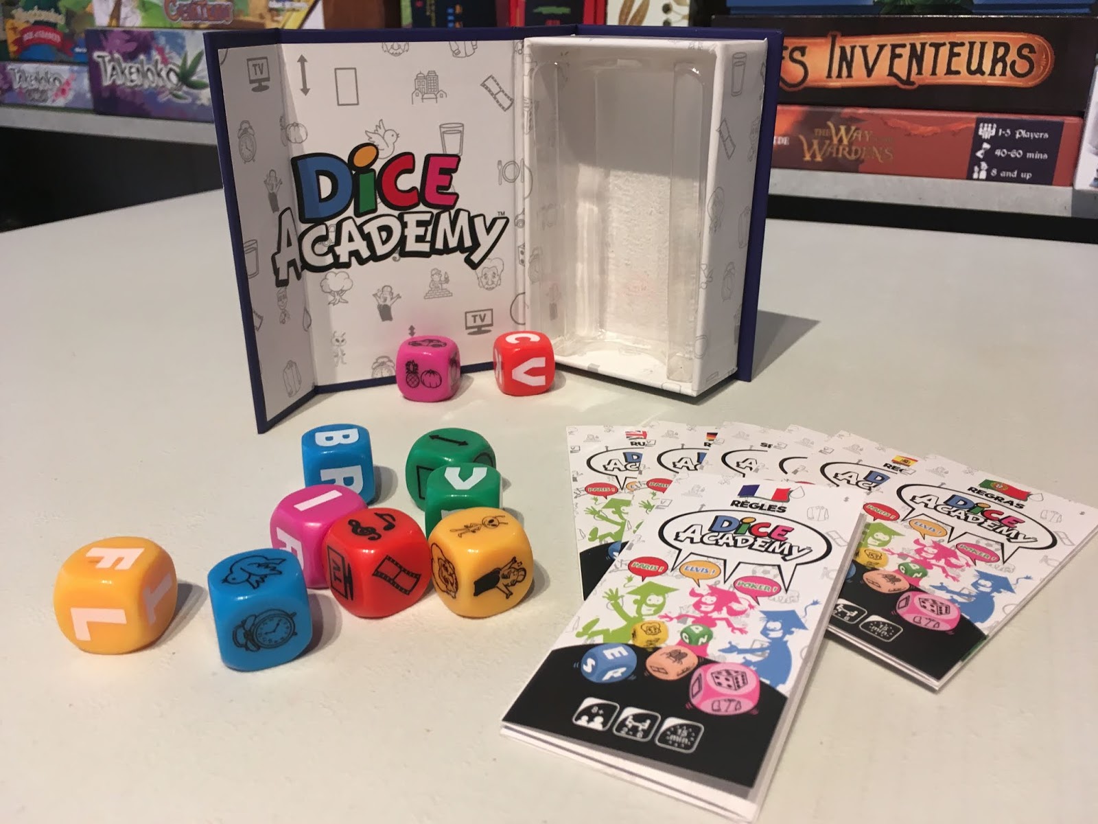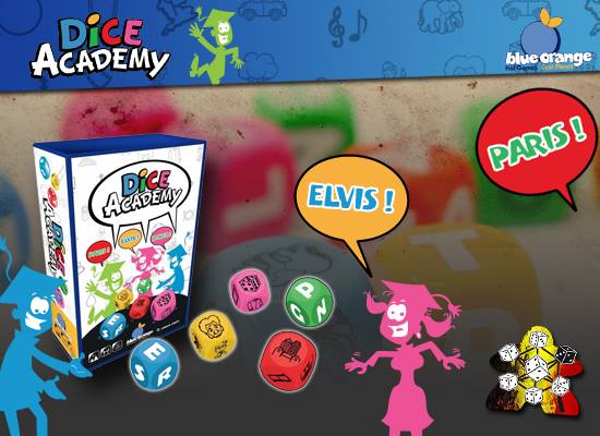 Petite sortie sympathique toute fraîche chez Blue Orange, voici Dice Academy, un jeu de dés et de mots de Yannick Gobert. Les ludistes le connaitront probablement, Yannick s’est occupé de Geronimo, le distributeur belge. Le voici auteur de jeu en parallèle du lancement d’un nouveau projet ludique :
